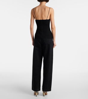 As seen at Khaite’s AW20 show, this black Vienna top is embellished with a procession of Swarovski crystals along the bodice to capture the glamorous mood in New York. It’s crafted from pleated tulle to a streamlined silhouette with a boat neckline and slender sleeves.