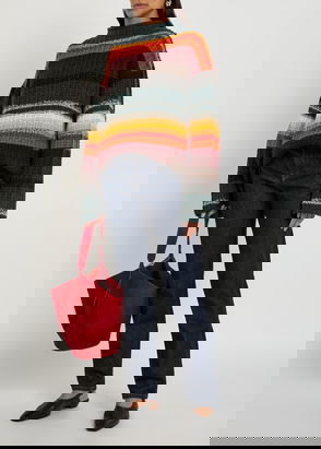 The chunky handle and oversized fit of KHAITE’s ‘Yanis’ sweater make it all the more cozy. It’s knitted from naturally insulating cashmere and has earth-toned horizontal stripes and a ribbed finish.