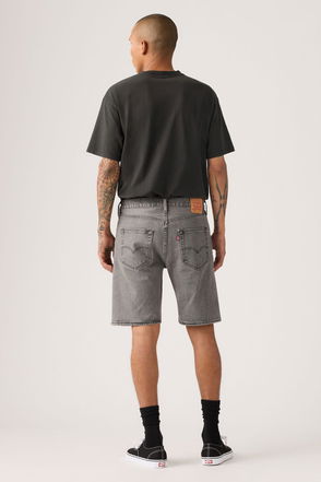 Cotton denim shorts, laser-engraved with a subtle decorative abstract pattern. Featuring two side pockets, back pockets, belt loops and a shank and zip fly fastening.
