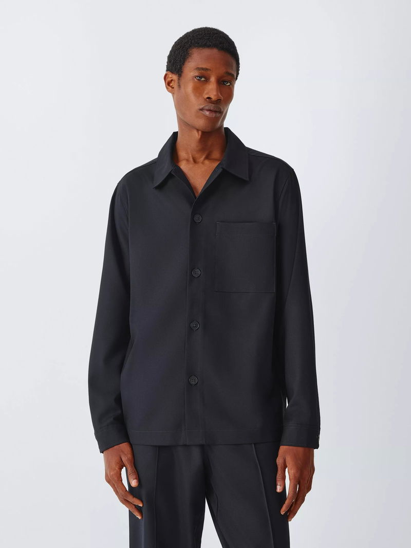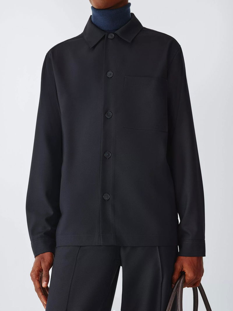 Pintuck detailing adds a modern edge to this shirt, an otherwise minimalist Kin design with a single chest pocket. Made of a fabric blend with naturally temperature-regulating wool.