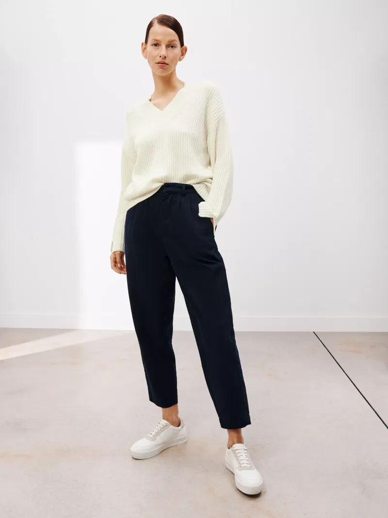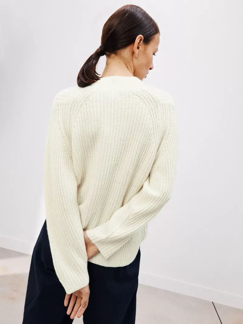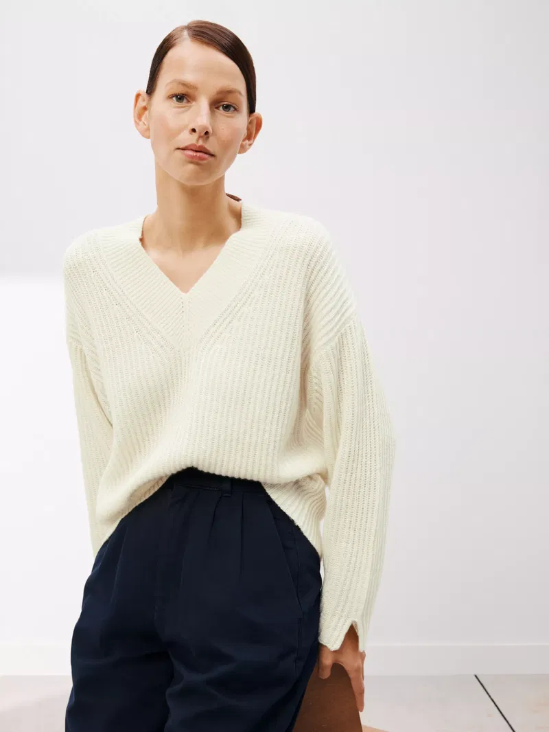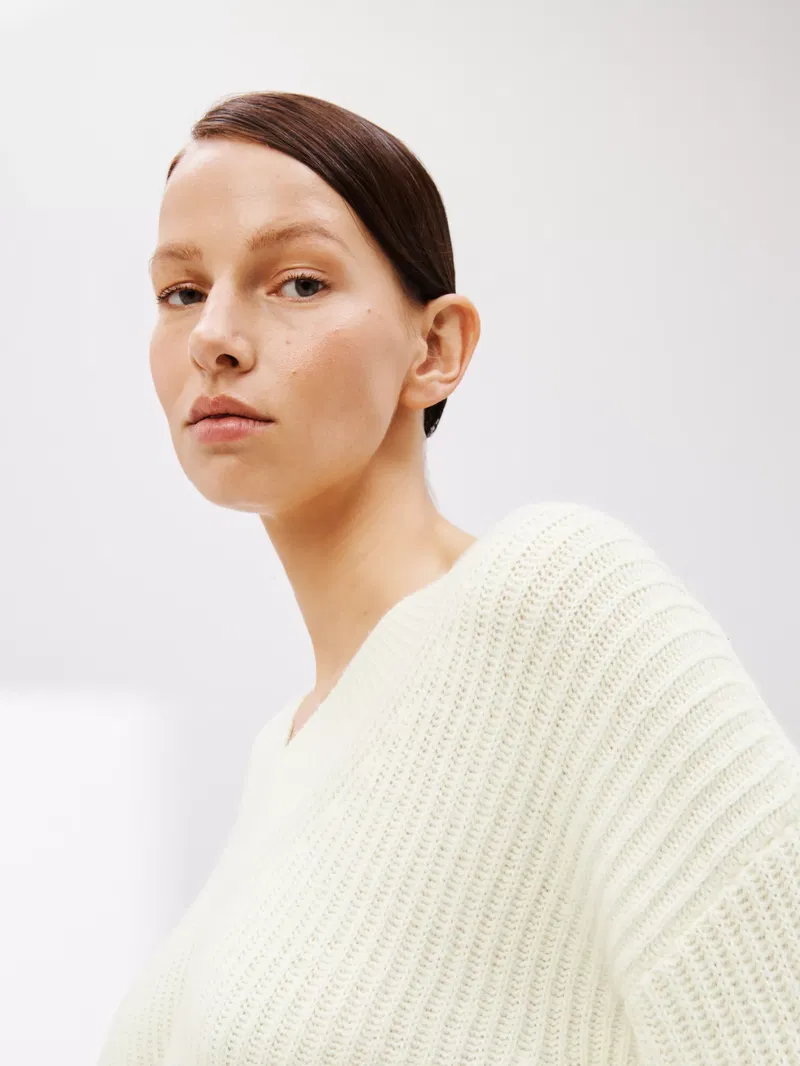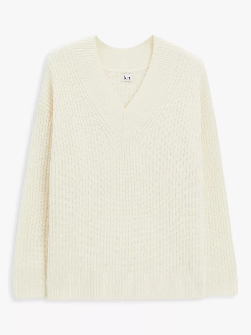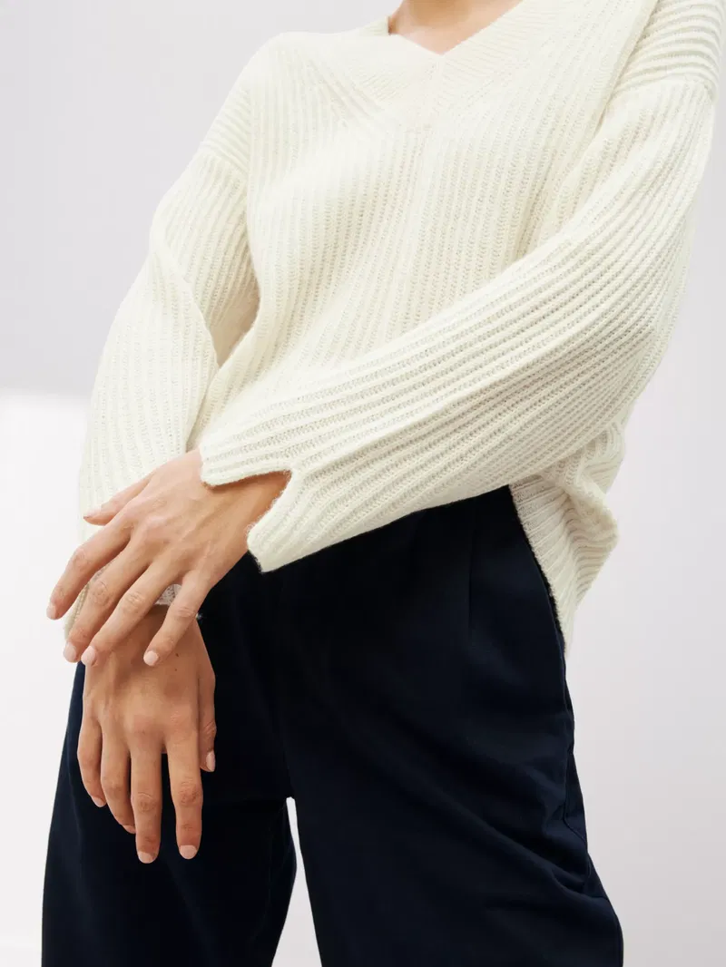 A classic winter warmer, this jumper is woven in an indulgently textured knit that keeps in warmth whilst still hitting the brief in the style stakes. With a smart, v-neckline, the cuffs are finished with an unusual notch cut out detailing.