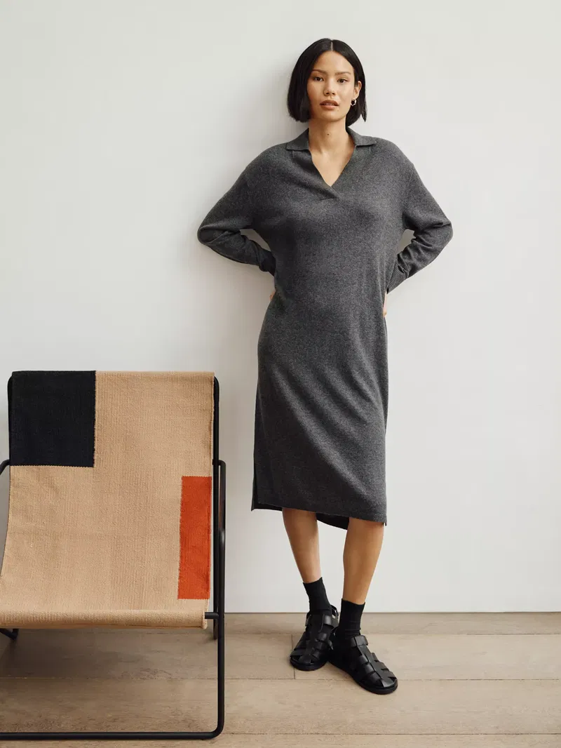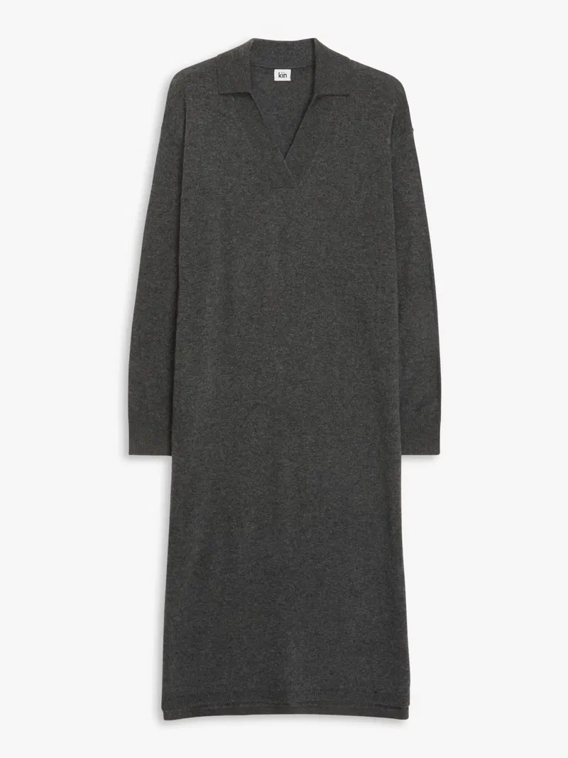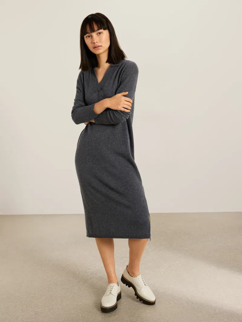 In a warming knit style that's ideal for colder days, this jumper dress comes with a sophisticated polo neckline and is woven from a cosy blend of fabrics including two types of wool.
