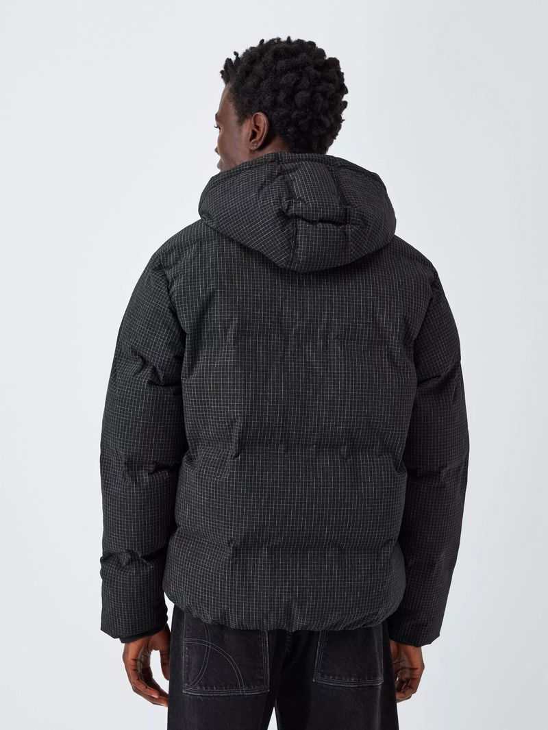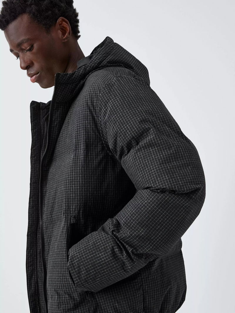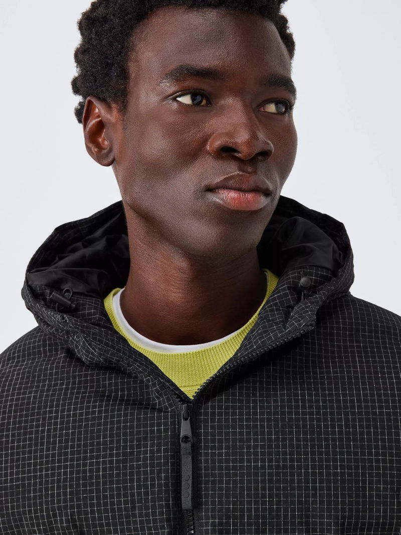 Short puffer jacket with insulation for warmth, and a ripstop outer treated with a water-repellent finish to keep you protected from light rain. This grid-patterned jacket features two zipped slant pockets and toggled adjusters on the hem and hood to ensure a snug fit.