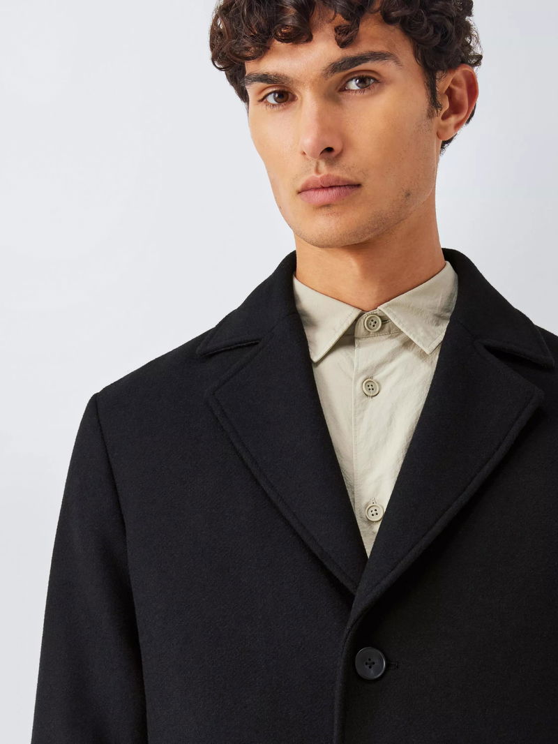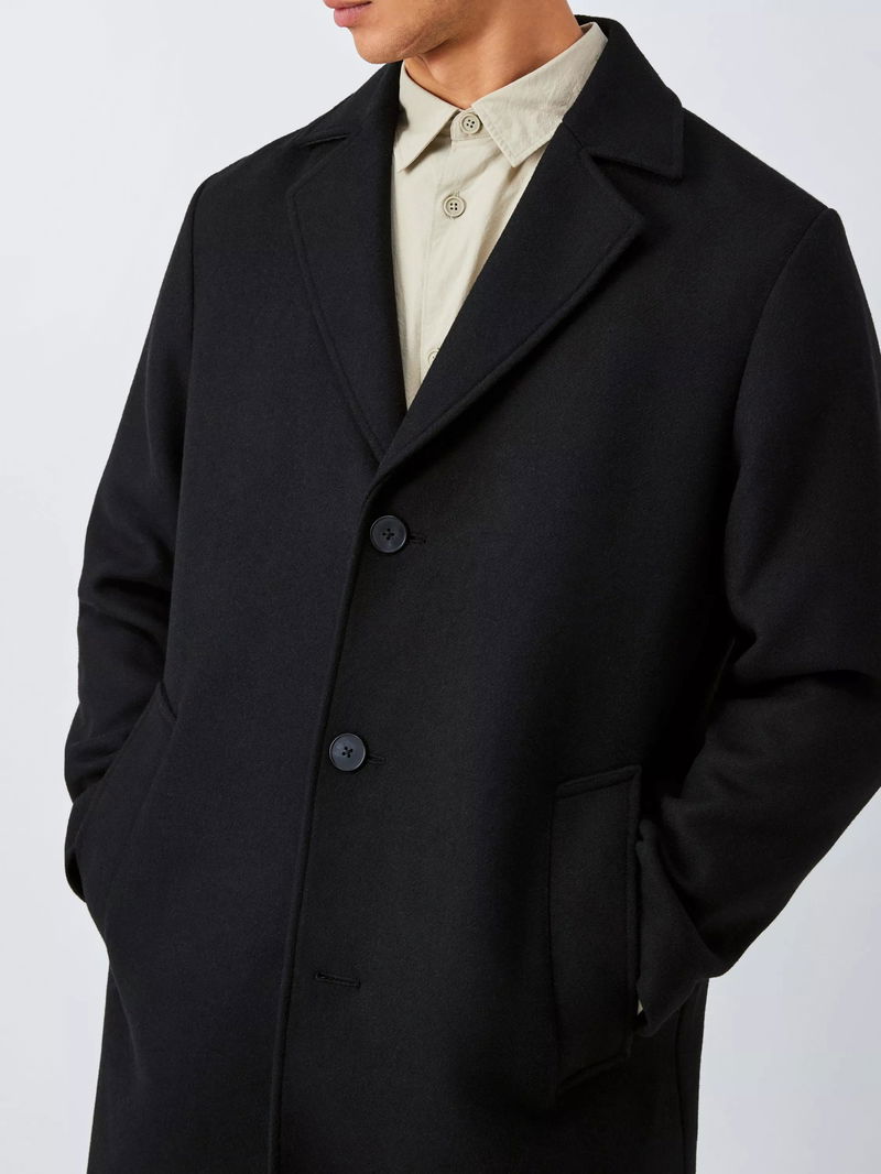 A versatile coat with a three-button front. This piece also has two convenient side entry pockets.