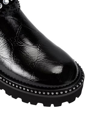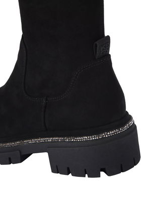 DKNY proudly presents Bax: created in black with a patent midsole, platform sole and gentle 50mm rise, this boot has been treated to a tonal soft trim at the topline for snuggly softness, complemented by branded tape at the counter.