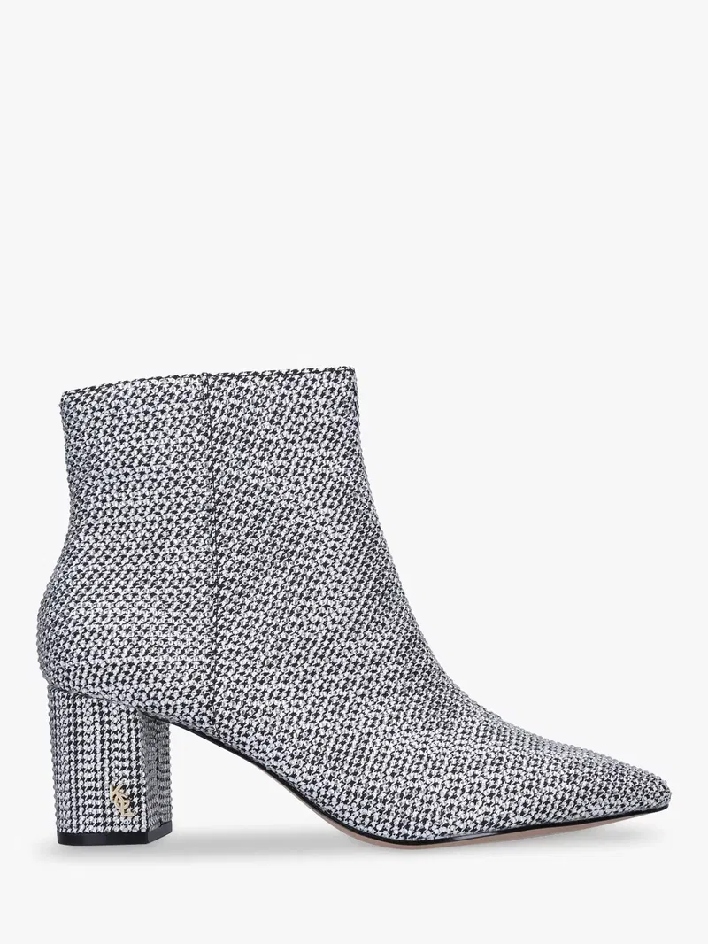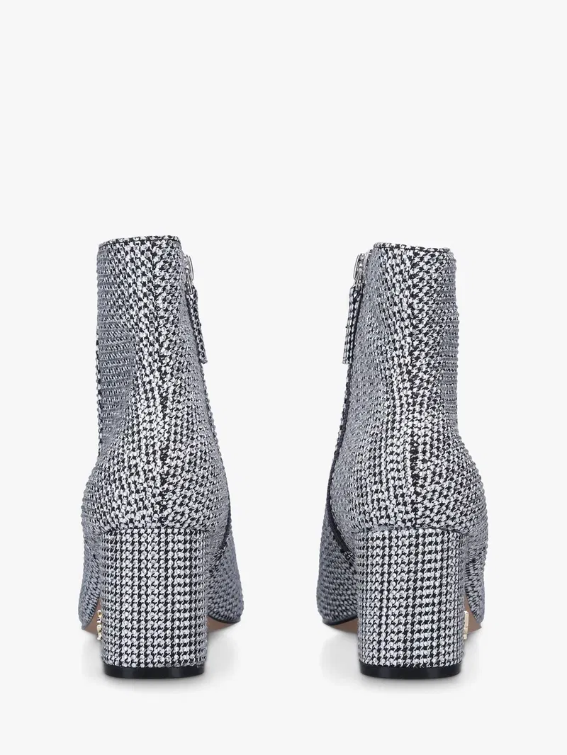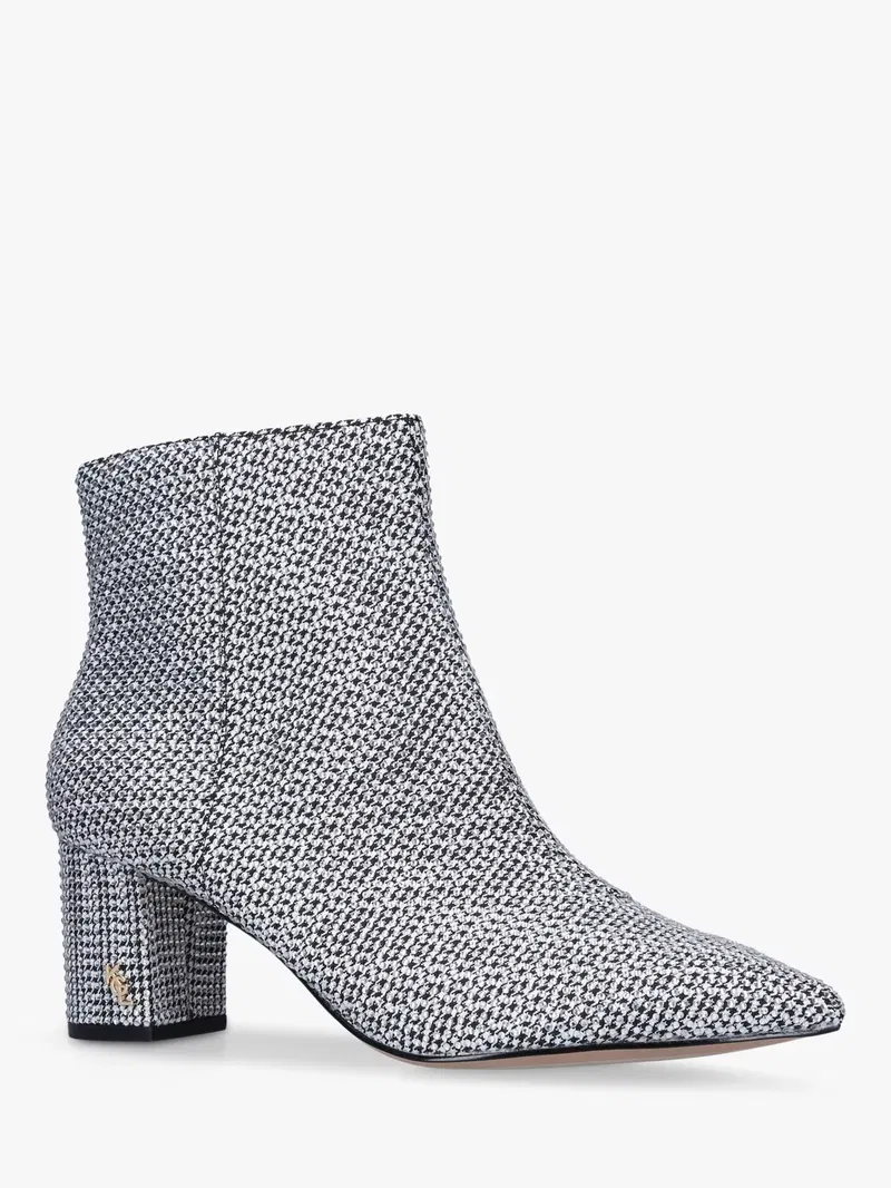Stepping out in style, this pair of ankle boots from Kurt Geiger London is made with textile uppers to enhance breathability. Sitting on a block heel, they are finished with a pointed toe that's sure to flatter. Heel height: 6cm.