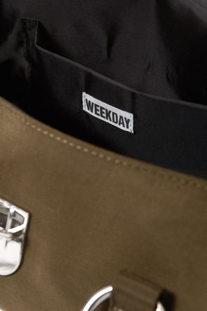 The Latte bag arrives in taupe with gold tone trims and branding on the front.