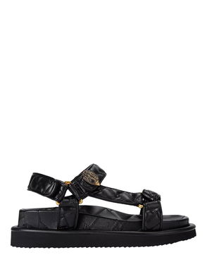 The Kurt Geiger Orson Crystal Sandal arrives in a denim fabric with quilted effect.