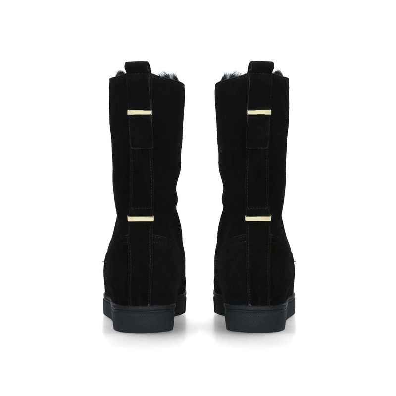 Put fun texture on everyday looks with the new Scorpio high-top from Kurt Geiger London. This playful design is crafted in a smooth black suede upper with a tonal faux fur trim at the cuff for a snug twist, and complete with a practical inner zip fastening.