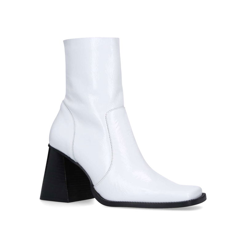 Add a touch of pride to your sartorial stride with Selma from Kurt Geiger London. Arriving in smooth patent white leather, this update on the classic calf boot features an 85mm flared black heel and a squared toe.