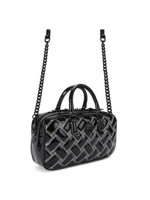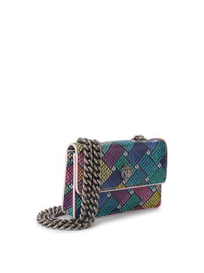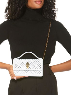The Kurt Geiger Recycled Small Multi Cross Body is crafted from a recycled nylon material with overstitch quilting in a weave pattern. The black metal eagle head features crystals and black crystal eyes on the front.