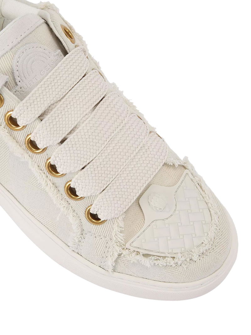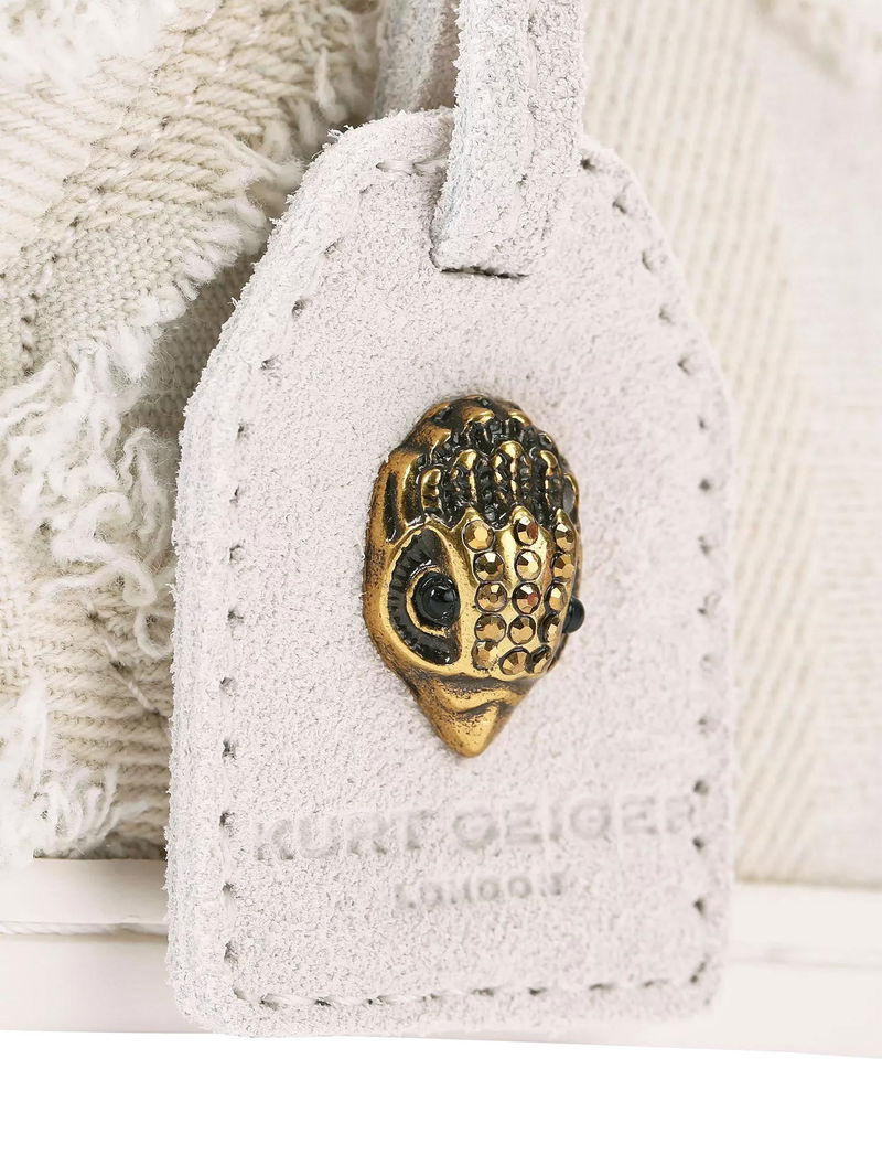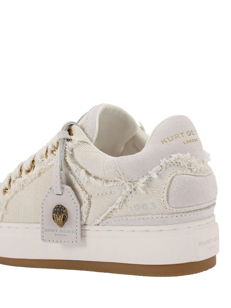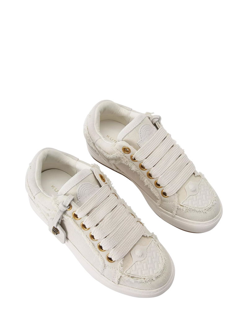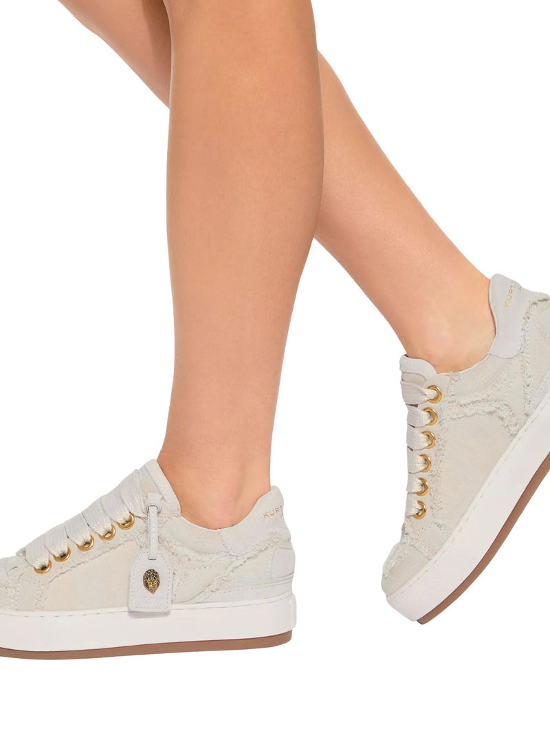Canvas trainers from Kurt Geiger London, with a supportive flatform heel, lace-up and comfortable round closed toe. Finished with textured frayed accents for added interest and a hardware branded tag charm.