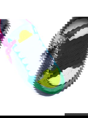 The Southbank Tag sneaker features a statement metallic gold upper with embossed rainbow design.