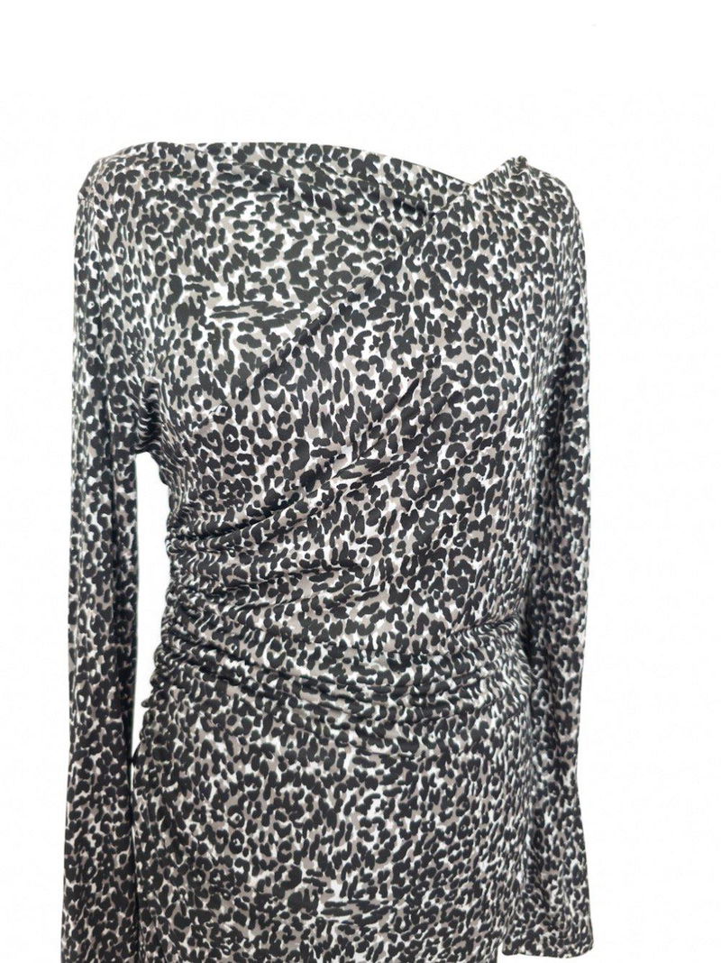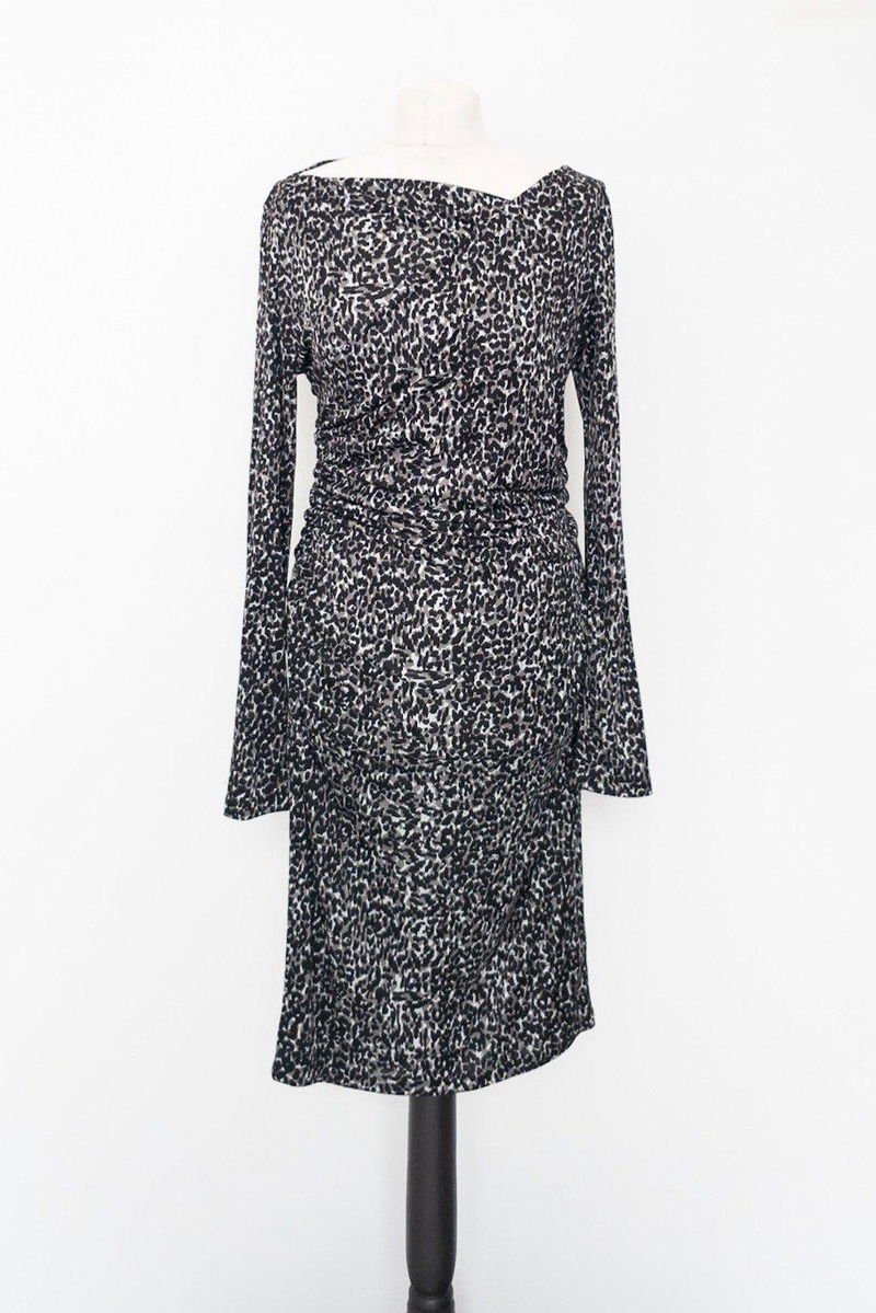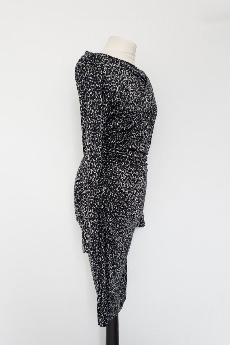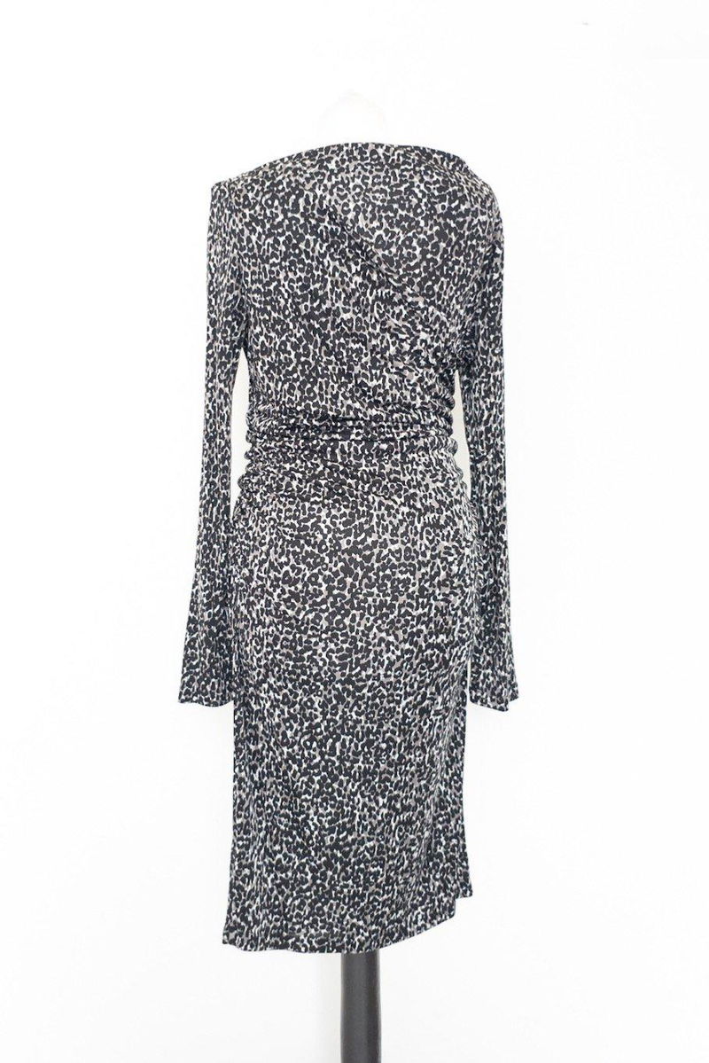 Lightweight draped neckline bodycon dress with an animal print for the perfect night out! -The overall fabric is slightly stretchy with side ruching on the waist for a cinched effect.