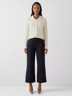 The perfect summer suit, the Avery jacket teams up with the matching waistcoat and trousers, but can also be worn to loosen up dresses or over jeans and a tee. Crafted in Portugal from beautiful Italian cotton in soft and textured cream, it has a straight cut, a wide, curved lapel, horn-effect buttons and large patch pockets to the front. Wear it with a pussy bow blouse and the Ami trousers or shrug it over a floral dress.