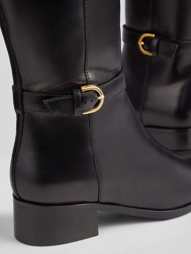 A great find for when temperatures begin to cool, this pair of knee-high boots from L.K.Bennett is cut from quality leather. Resting on a block heel, they have an almond-shaped toe that makes for a smooth finish.