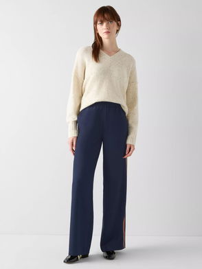 Experience the charm of city life with the Colette trousers, blending elegance and urban style. These maxi pleated trousers feature a side zip, and intricate pleats, embodying the latest trend. Ideal for workdays or relaxed weekends, they complement crisp white blouses for a polished appearance or a chic jumper for a laid-back vibe.
