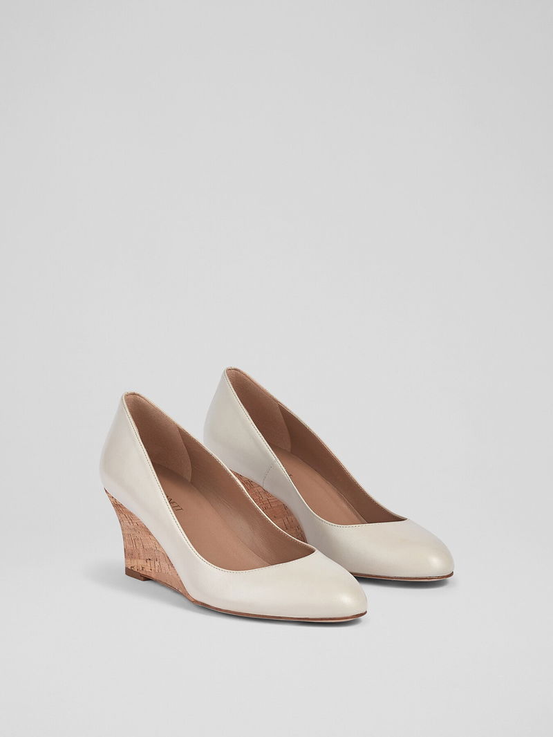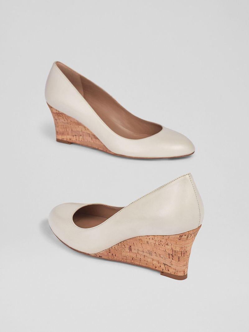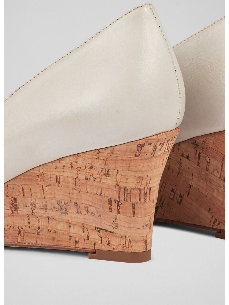 Eevi Ecru Leather Cork Wedges