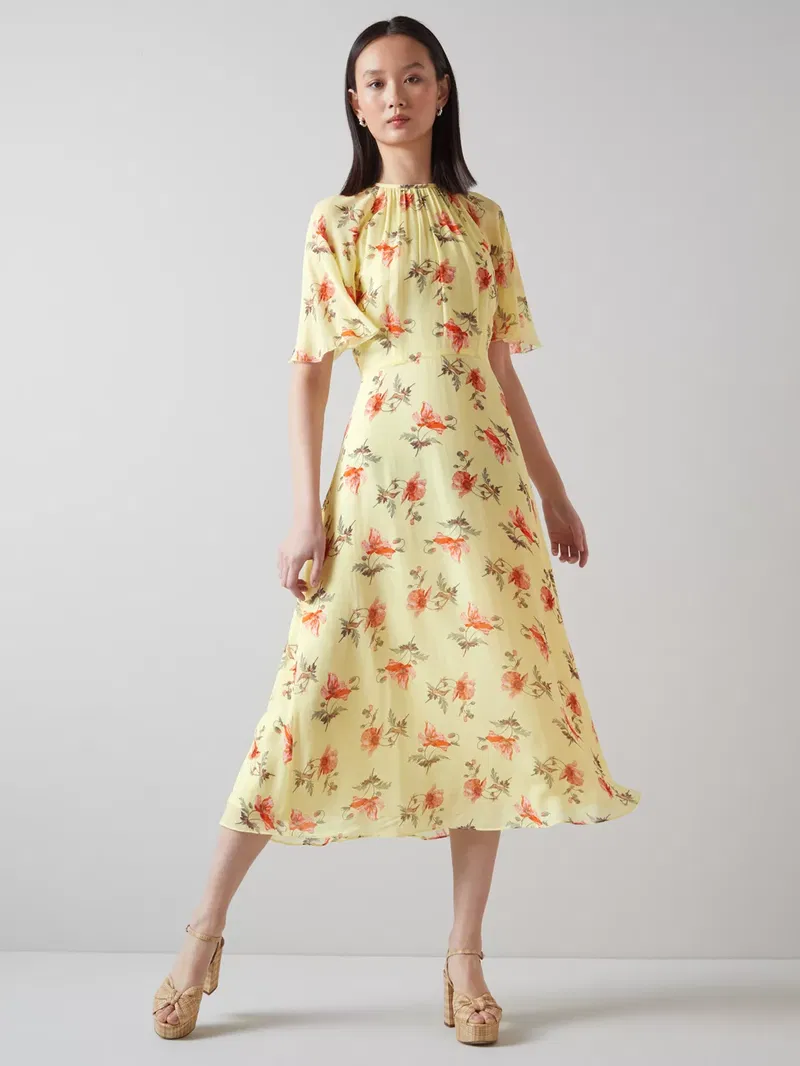 A tried-and-true favourite, this midi dress from L.K.Bennett is crafted from an airy viscose fabric. With a simple round neck and short sleeves, it is proof that florals are groundbreaking all year round.