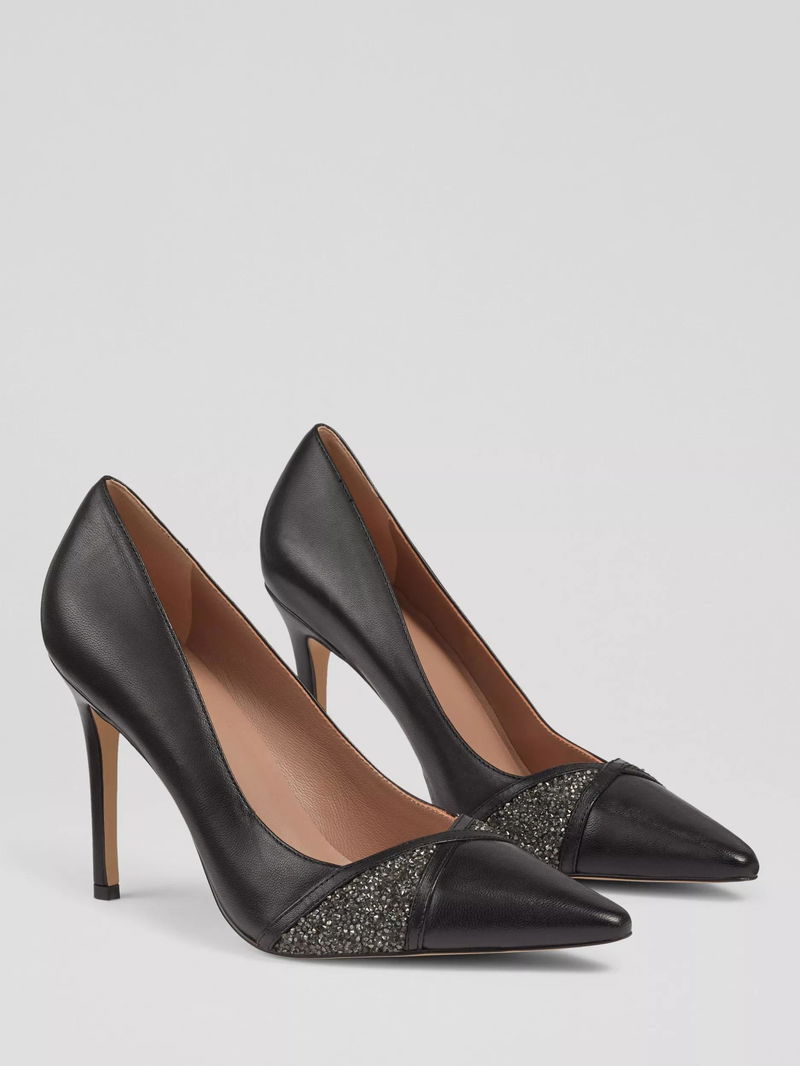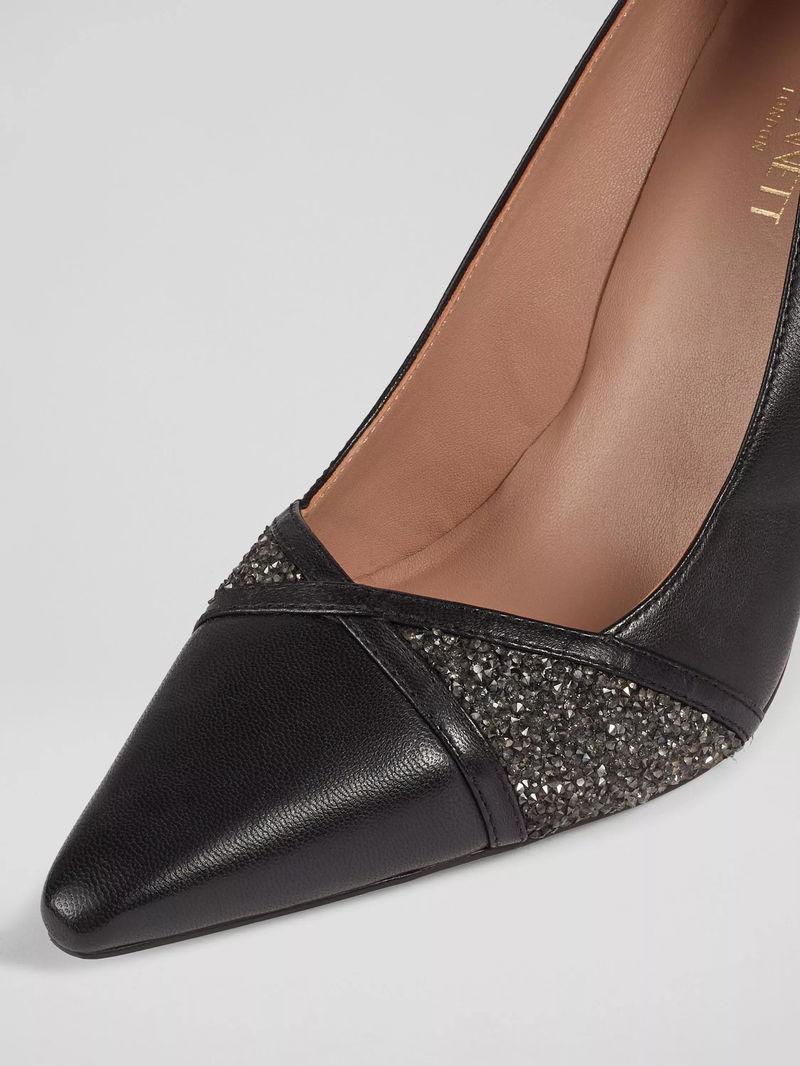 Elevate your footwear collection with these luxury Crystal Astra court shoes in black leather. These elegant heels feature a textured finish, adding subtle interest to their sleek silhouette. The classic court design offers versatility for any occasion, from meetings to evening events. Comfortable yet stylish, these mid-heel shoes provide all-day wear with a comfortable fit. Style them with tailored trousers and a blouse for workwear elegance, or pair with your favourite cocktail dress for a refined evening look.