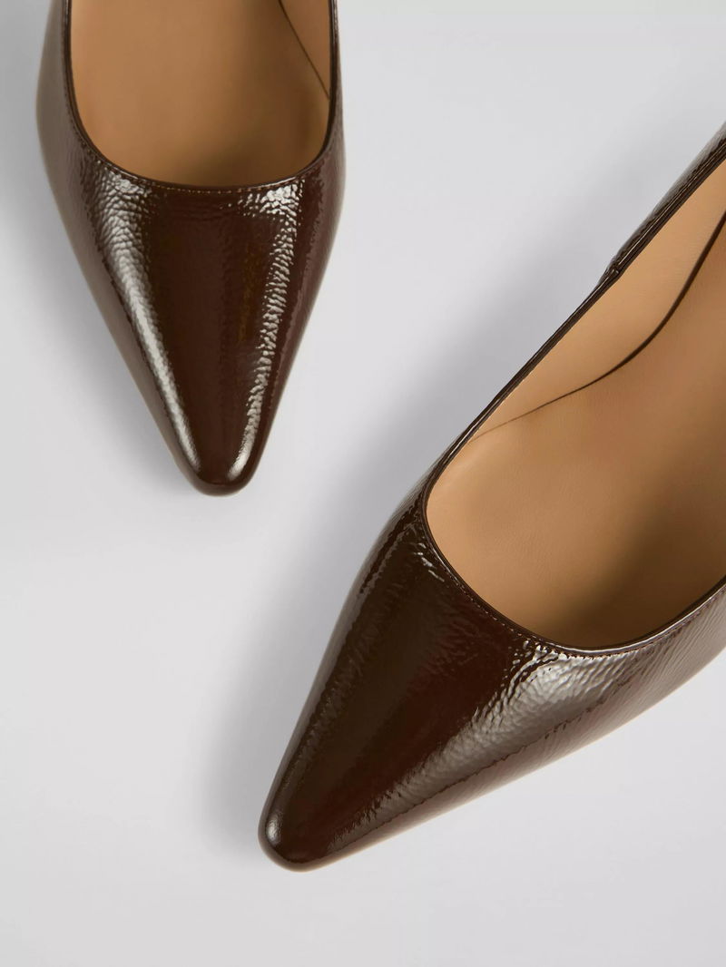 L.K.Bennett's icon, reimagined and here to stay. This new take on the classic has the same timeless feel, just with a fresh twist. Handcrafted by artisans in Spain from buttery nappa leather, the updated Floret now has a slimmer, sculpted stiletto heel and an elongated, subtly squared-off pointed toe. The lowered topline flatters the foot and lengthens the leg with extra padding for day-to-night comfort and a resin sole for extra grip, even when the weather isn't playing nice. Style the new Floret with maxi dresses, midi skirts or your favourite denim. They're your go-to court shoe, made modern.