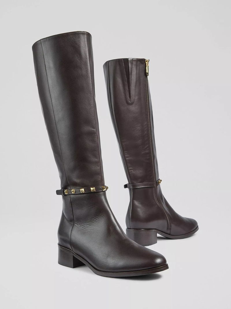 Introducing Stevie, a stylish addition to your everyday wardrobe. Made in Italy from high-quality calf leather, these flat high-knee boots combine elegant design with understated edge through refined stud detailing. The sleek silhouette offers smart-casual appeal, making Stevie ideal for tailored trousers, midi skirts, or denim. The quality leather ensures lasting comfort and develops a beautiful patina over time. These knee-high boots, with their flattering length, are ideal for city streets and weekend outfits, perfect for everyday wear.