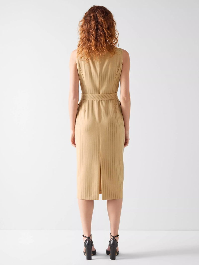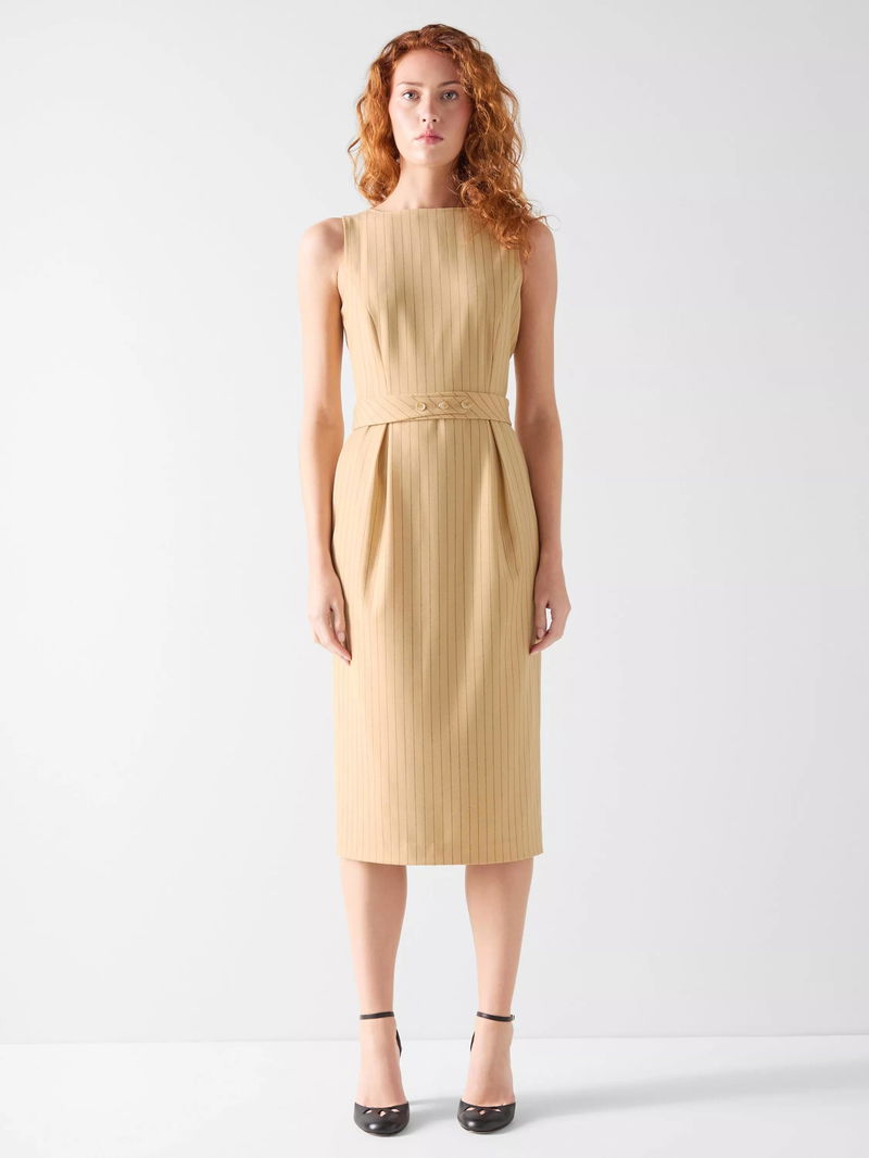 L.K.Bennett Winnie Wool Blend Pinstripe Midi Dress, Beige/Navy