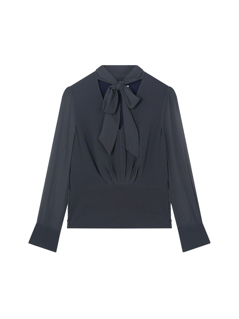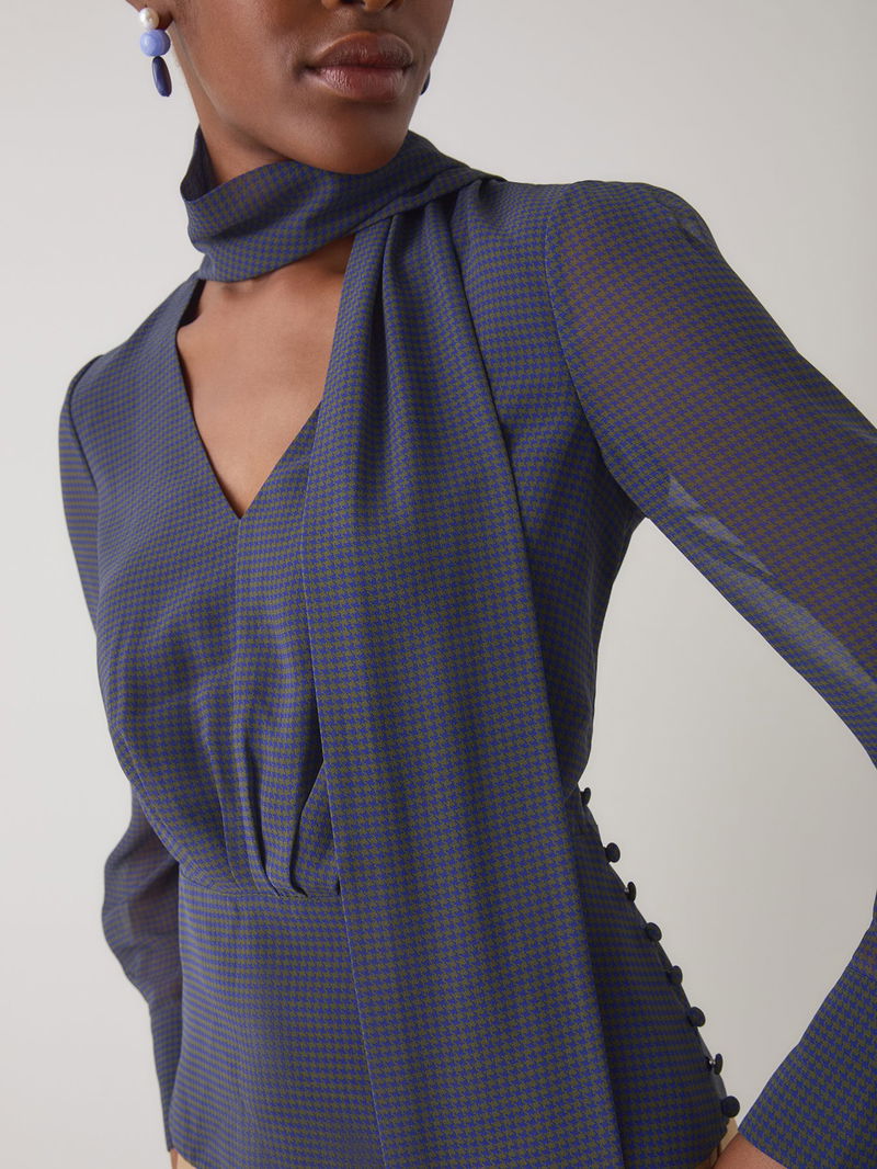 Midnight Houndstooth Print Recycled Fabric V Neck Blouse Multi