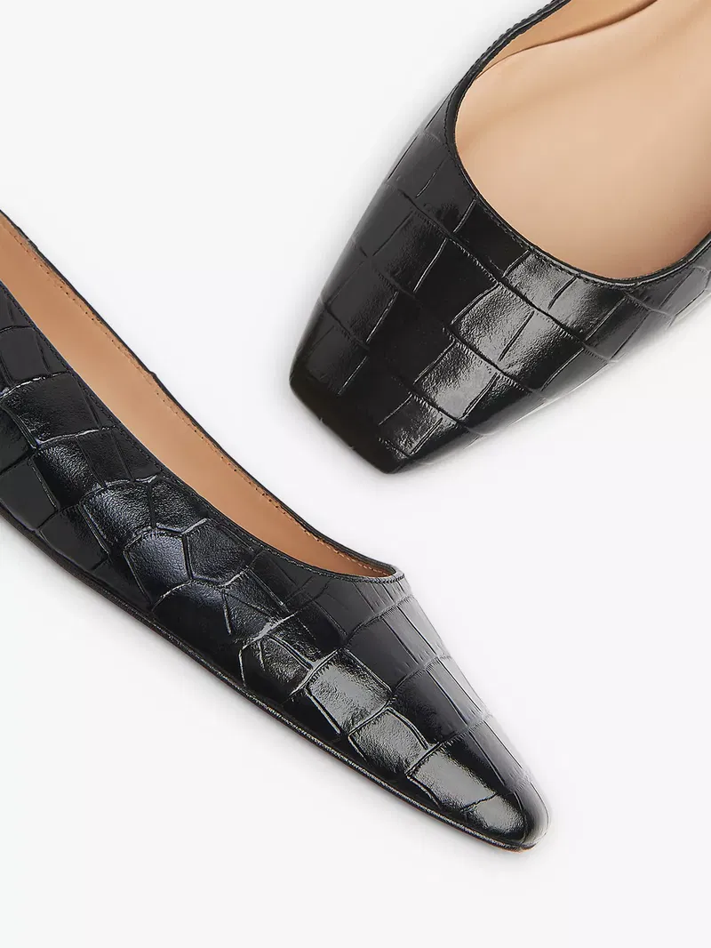Simple and stylish, every wardrobe needs a chic pair of flats, and the Phyllis ballerinas perfectly fit the bill. Crafted in Spain from beautiful croc-effect leather, they have a square toe, a sleek silhouette and a slight heel. Wearable and with minimalist appeal, pair them with tailored trousers or jeans for an understated everyday look.