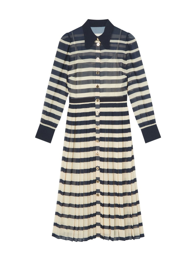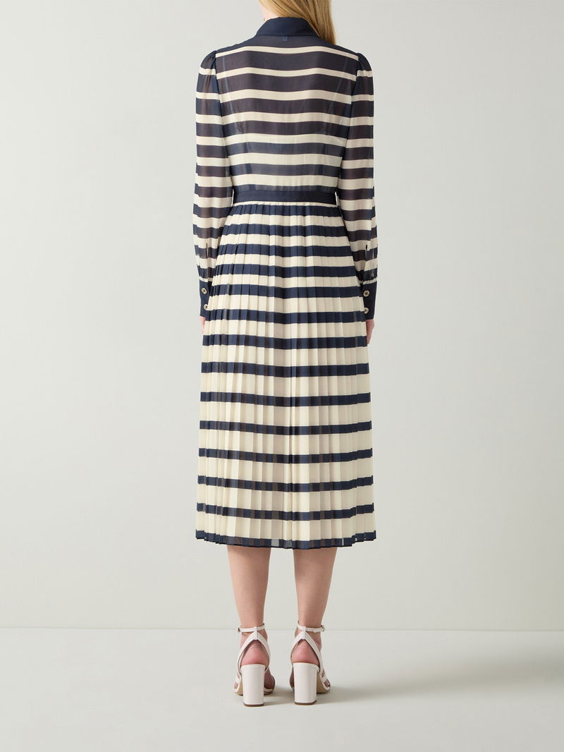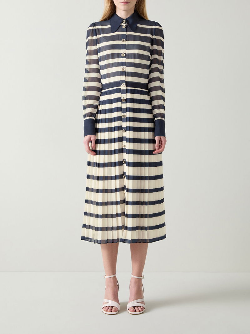 Tallis Spring Navy & Cream Placement Stripe Dress
