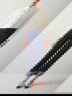 Embrace warmth and sophistication with the Vita collar cotton tweed jacket. This cropped jacket, crafted from Italian cotton, boasts metal buttons and full length sleeves. Ideal for lunch dates or business meetings, pair it with tailored trousers or a pencil skirt for a stylish, polished look.