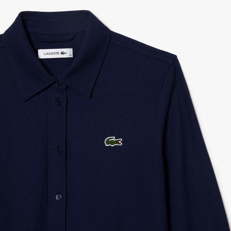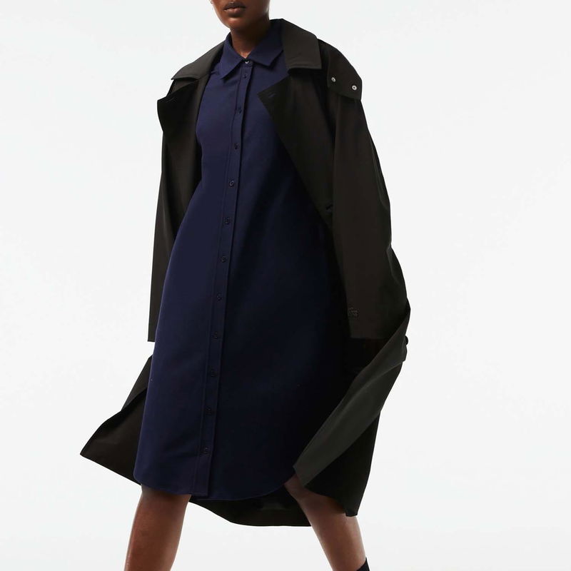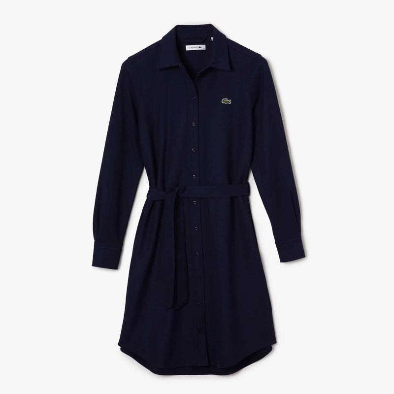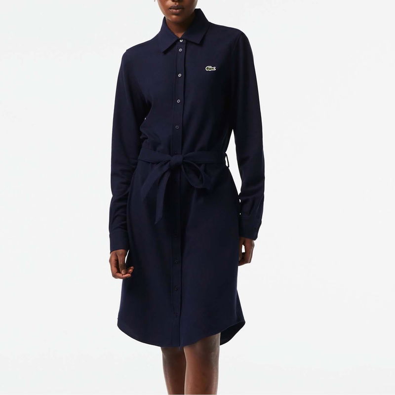 Women's Lacoste Adjustable Cotton Piqu, Polo Dress Polo collar: An emblematic look. Button placket on front: Easy to put on. Adjustable waist with belt: For a customised silhouette. Crocodile on chest: Feminine Lacoste style.