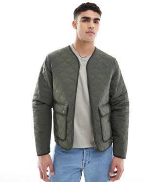 The quilting provides essential insulation while ribbed trims create a classic blouson shape that maintains the brand's smart aesthetic.