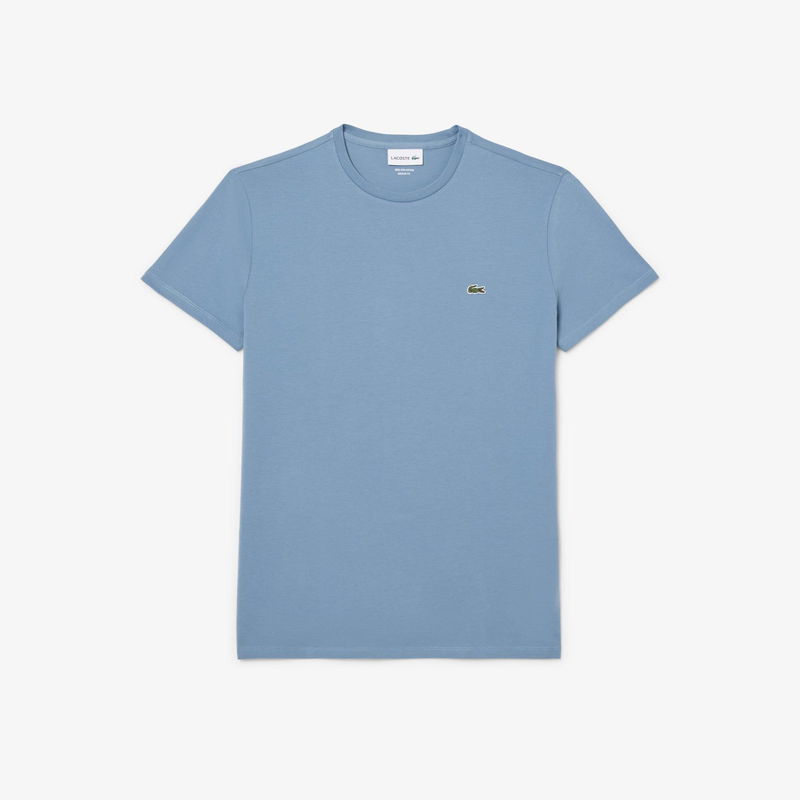 Mens Lacoste Cotton Pima T-Shirt in limestone Lacoste sportswear experts since 1933 is committed to using the best quality fabrics. This versatile essential tee is cut from a premium cotton grown in Peru that's particularly fine light hard-wearing and has a subtle sheen.