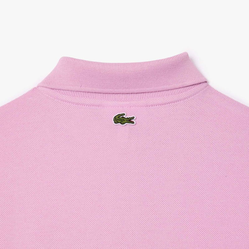 The perfect expression of Lacoste's timeless wardrobe. Polo made of petit piqué in organic cotton. 2 2cm recycled green crocodile under the back neckline 5 5cm iconic original badge crocodile.