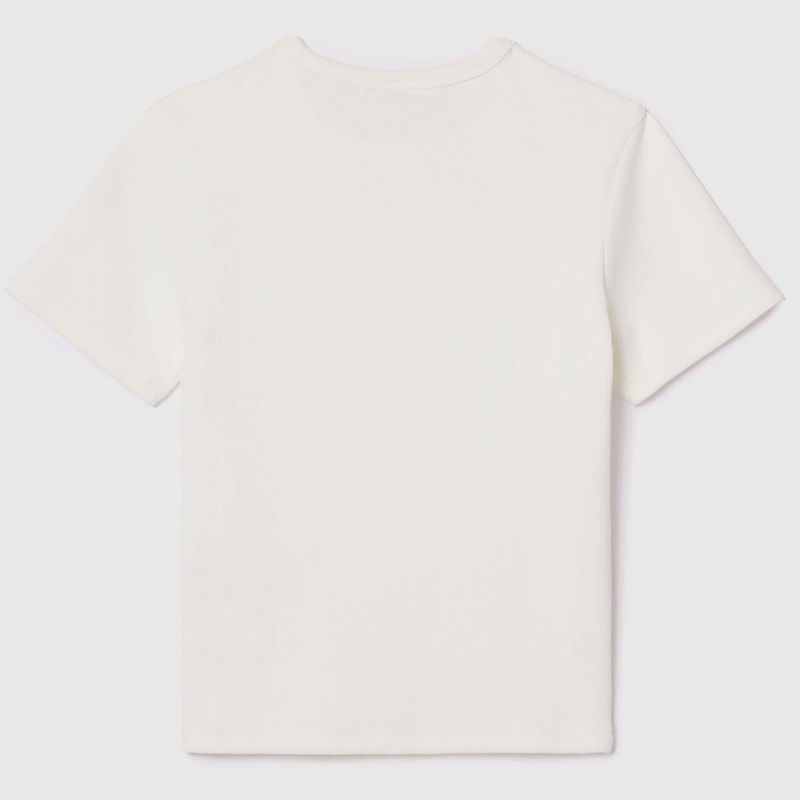 Juniors Lacoste Cotton Rib T- Shirt in cream. Crewneck. Short sleeves. Embroidered green crocodile motif on the chest. Regular fit. Cotton organic cotton jersey with ultra-dry properties.