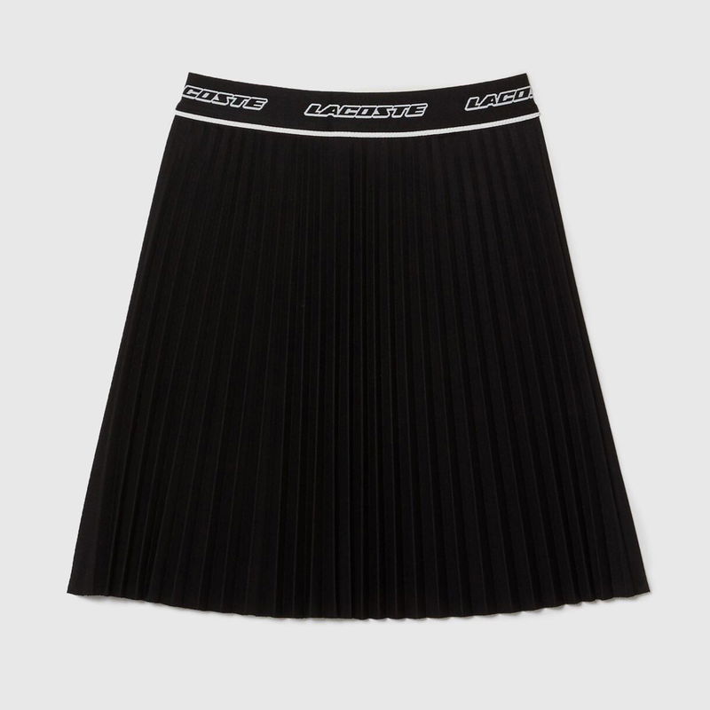 Womens Lacoste Elasticated Waist Pleated Skirt in black.