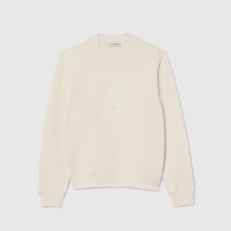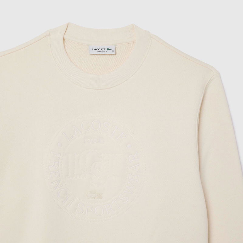 Womens Lacoste Embroidered Crewneck Sweatshirt in cream.