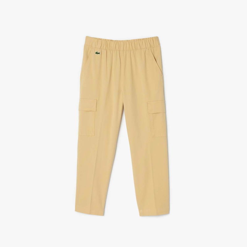 Cargo pants made of gabardine in cotton and elastane. Adjustable waistband for more comfort. Two patched pockets on legs.