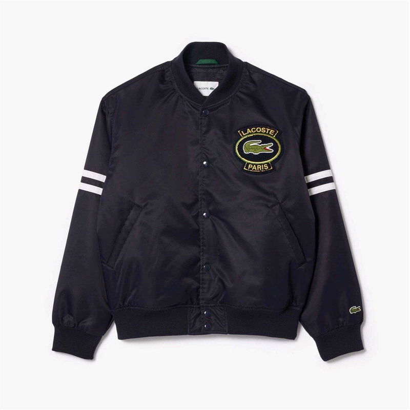 The Lacoste Long Sleeve Varsity Bomber Jacket pairs heritage style with modern functionality. Made with a sleek exterior and lightweight padding inside, this regular fit jacket features sleeve tipping detail and the Crocodile Paris embroidery on the chest for authentic brand appeal.