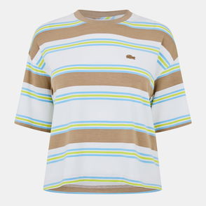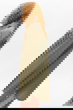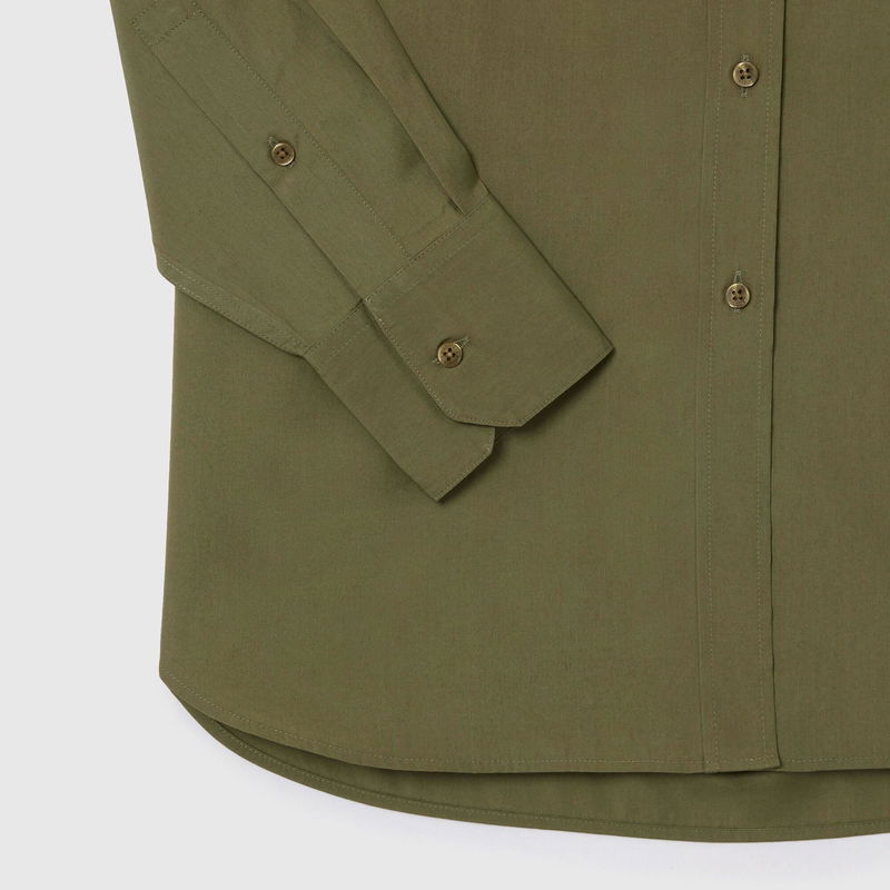 Womens Lacoste Oversized Poplin Shirt in khaki. Classic collar. Long sleeves with button cuffs. Full button fastening. Signature embroidered crocodile logo on the patch breast pocket. Curved hem. Comfortable loose cut.