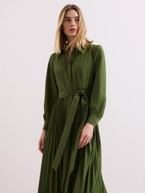 Womens Lacoste Pleated Colour-Block Sweatshirt Dress in green.