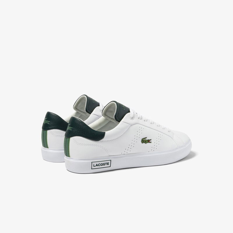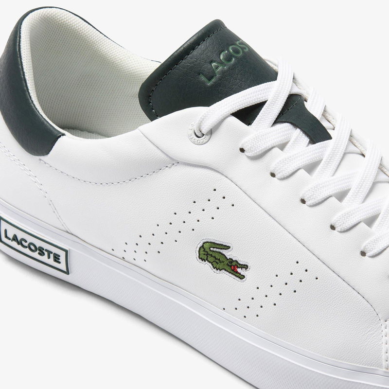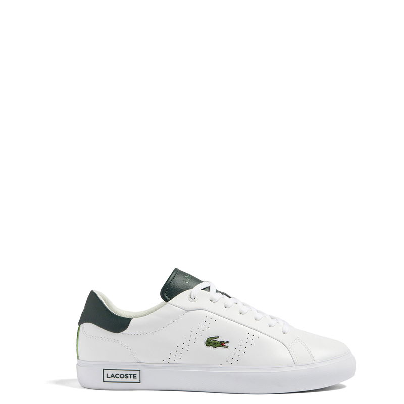 Elevate your essential collection with these crisp Power Court trainers by Lacoste. Expertly crafted using a luxurious leather upper with a breathable polyester lining and ortholite insole, set upon a durable 100% rubber outsole creating unrivalled comfort. Tennis-inspired, this silhouette offers clean lines, providing a low top shape with secure lace-up fastening for enhanced comfort, webbing on the leather-coated heel and ventilation holes allow for confidence even after all day wearing. Designed in a striking colourway this look is elevated by the contrasting colour trims and iconic crocodile embroidery on the side for a prestigious touch, especially with the rubberised logo font on the side making for a prestigious finish.
