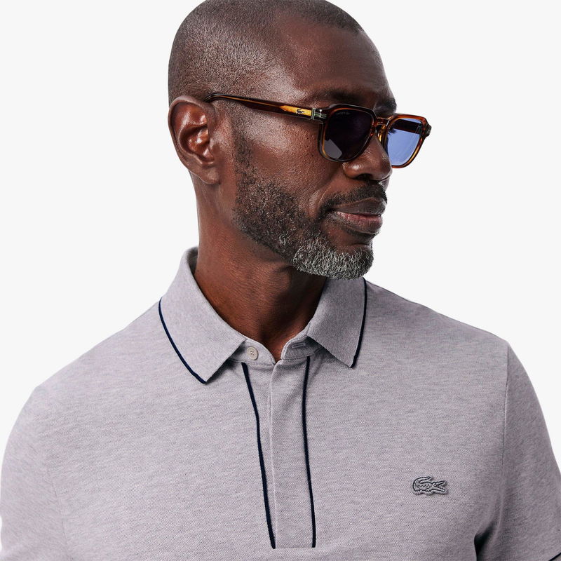 Mens Lacoste Regular Fit Paris Stretch Piqu, Polo Shirt in silver chine The Smart Paris polo shirt is a particularly elegant take on a Lacoste essential. Made from supple breathable stretch piqu, with expert design details including a concealed button placket ribbed trim and a tonal crocodile.