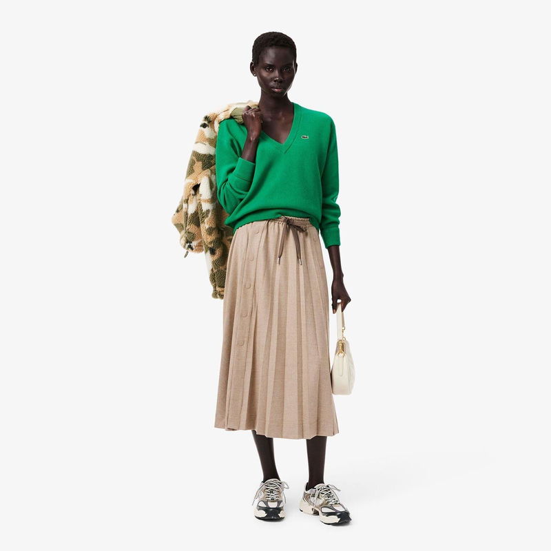 This essential winter V neck sweater is a key piece in the Lacoste collection. Made from premium wool and knit using classic moss stitch for a soft feel and a retro finish. Plus a signature crocodile on the chest.