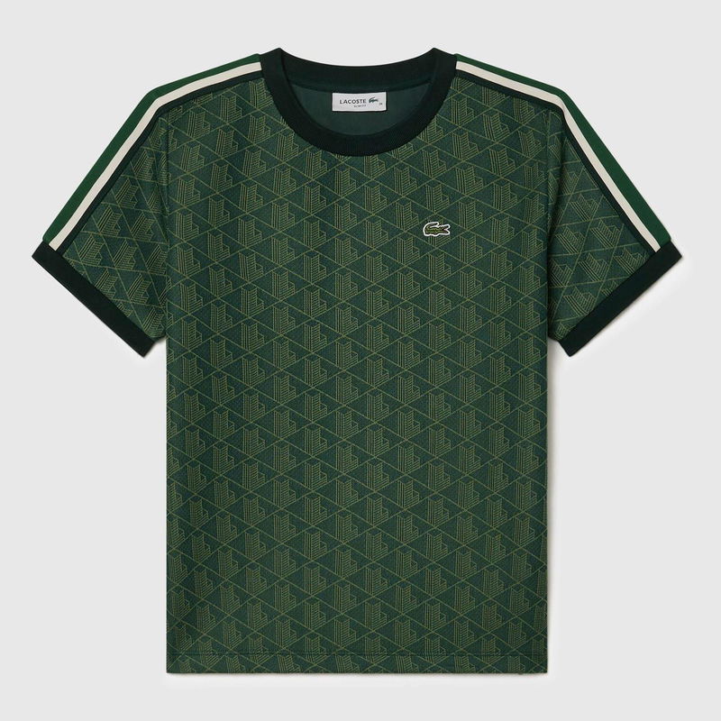 Womens Lacoste Slim-Fit Monogram Jacquard T- Shirt in green.