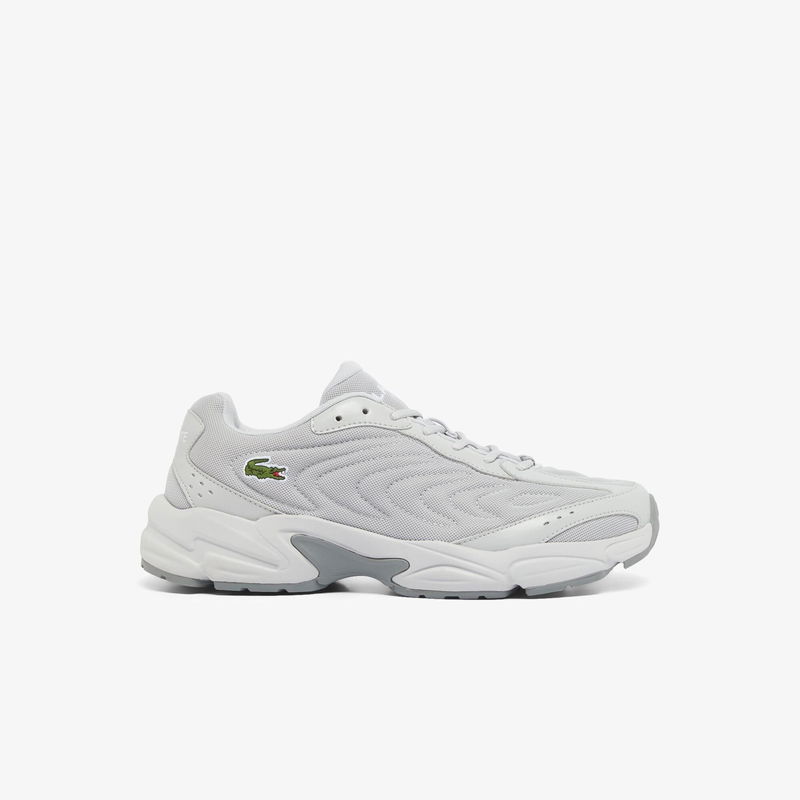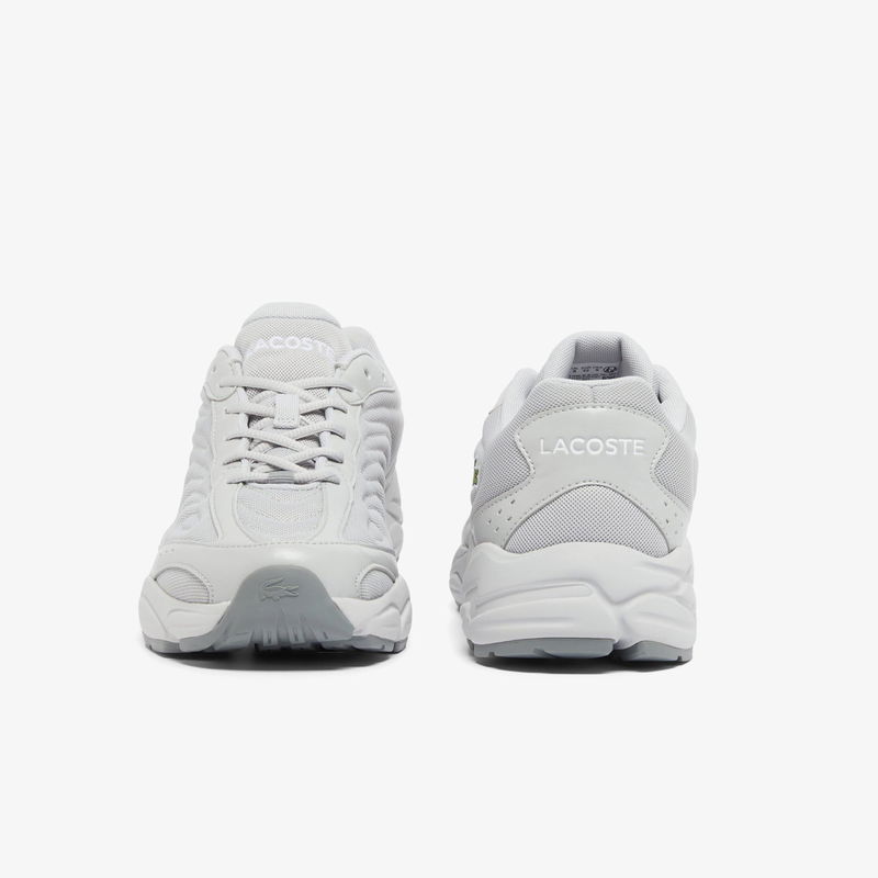 Mens Lacoste Storm 96 2K Lite Leather Sneakers in grey - white The Storm 96 2K Lite is a lifestyle design inspired by Lacoste's very first running shoe re-inventing 2000s running style for modern men.