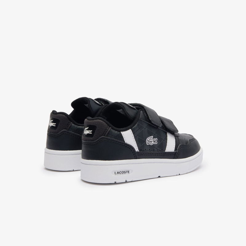 Designed for little kids with big style the Lacoste T-Clip 124 trainers are sure to stand out. They,re part of Lacoste,s Signature design pack with their monogram graphic print and embroidered crocodile patch making them the perfect choice for mini fashion lovers with bold style. Comfortable and cute they,re sure to become kids, new must-have shoes this season.. Court sneaker.