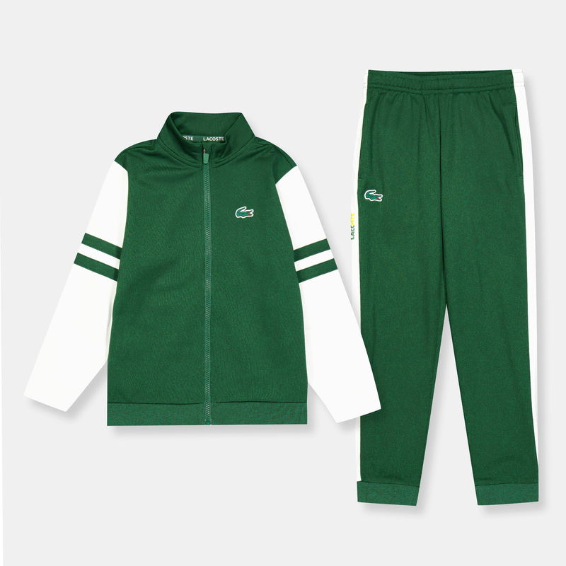 Lacoste's Unisex Kids' Tracksuit pairs sporty athletic style with the brand's characteristic polish. Designed for active youth, this coordinated activewear outfit features clean lines and practical details for everyday comfort and leisure activities.