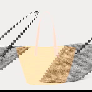 Brooklyn-based designer Lauren Manoogian's fascination with artisanal craft is captured by this cream Oval backpack, which is created by artisans in Peru. It's hand-crocheted from cotton and linen fibres with seamless sides, then suspended from tan leather straps which weave through the top, acting as drawstrings.